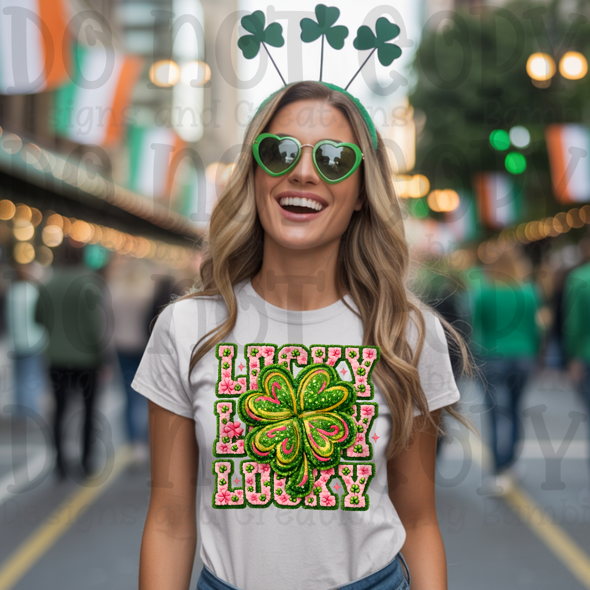 Faux Embroidery/Yarn Lucky Stacked with Large Clover