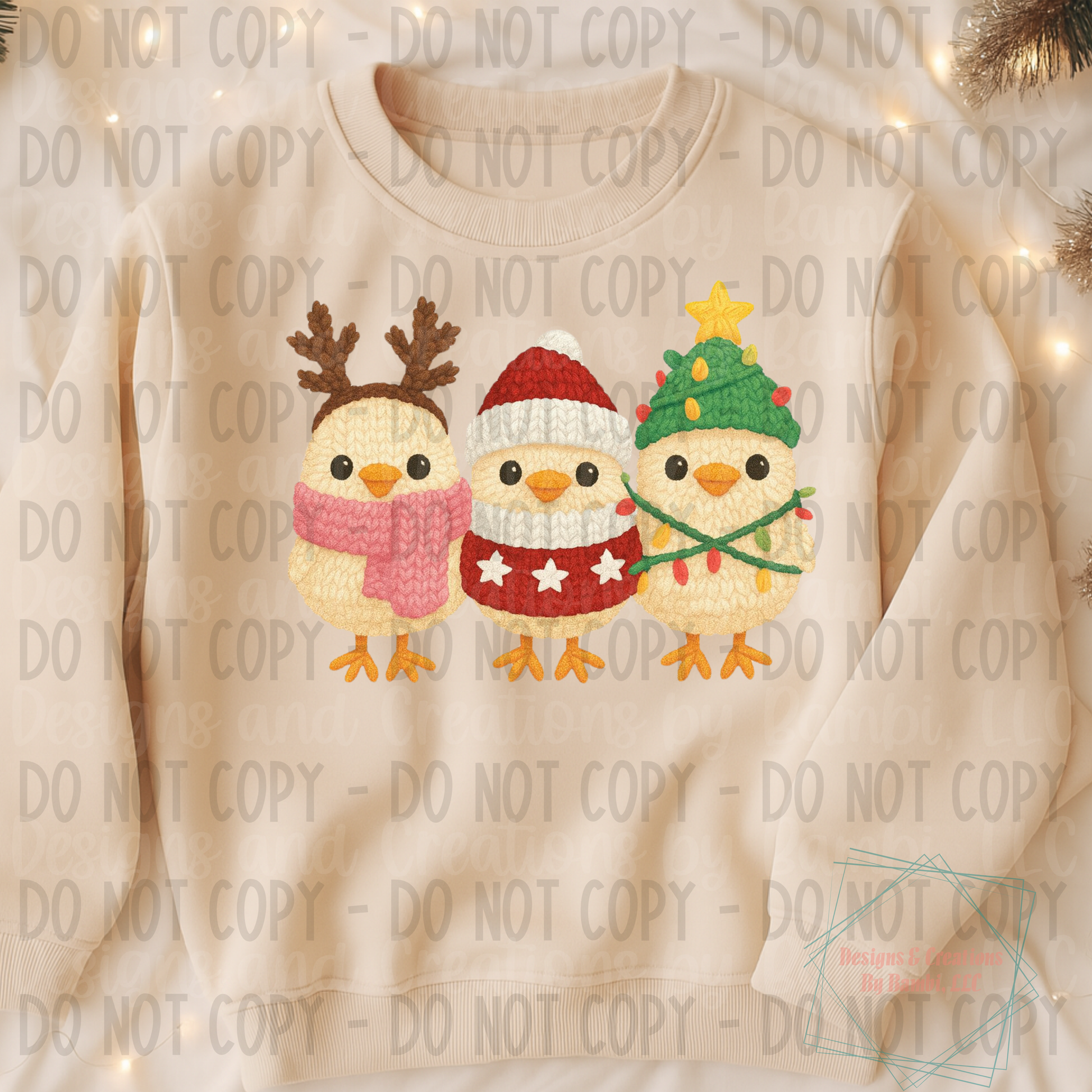Faux Yarn Festive Trio of Chicks Version 2